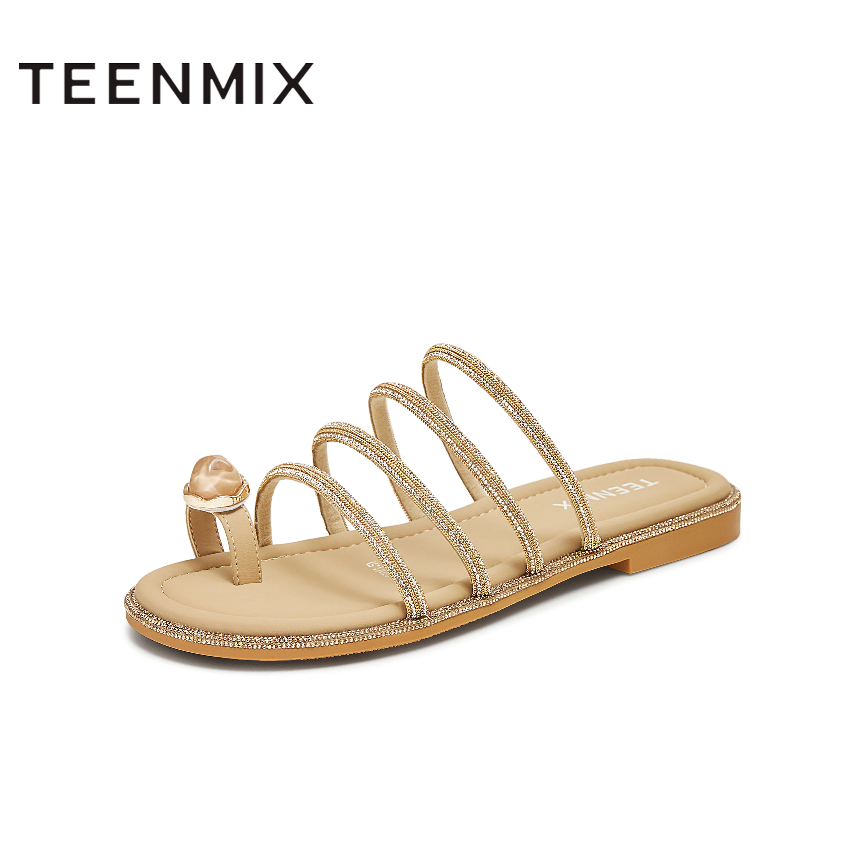 天美意夏季新款舒适海边沙滩鞋平底拖鞋半拖女一字拖KT091BT5