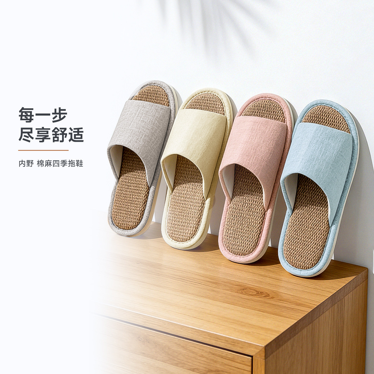 【直播专属】uchino内野棉麻拖鞋四季居家家用防滑室内男女拖鞋