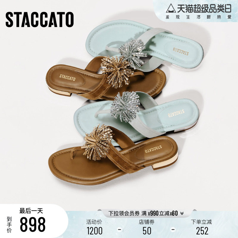 思加图2026新款烟花繁星复古夹脚人字拖平底外穿凉拖鞋女EDU12BT6