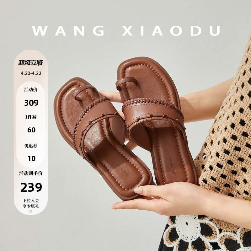 【王小毒】晴天海岛●手工编织夹趾拖鞋女外穿沙滩度假真皮一字拖