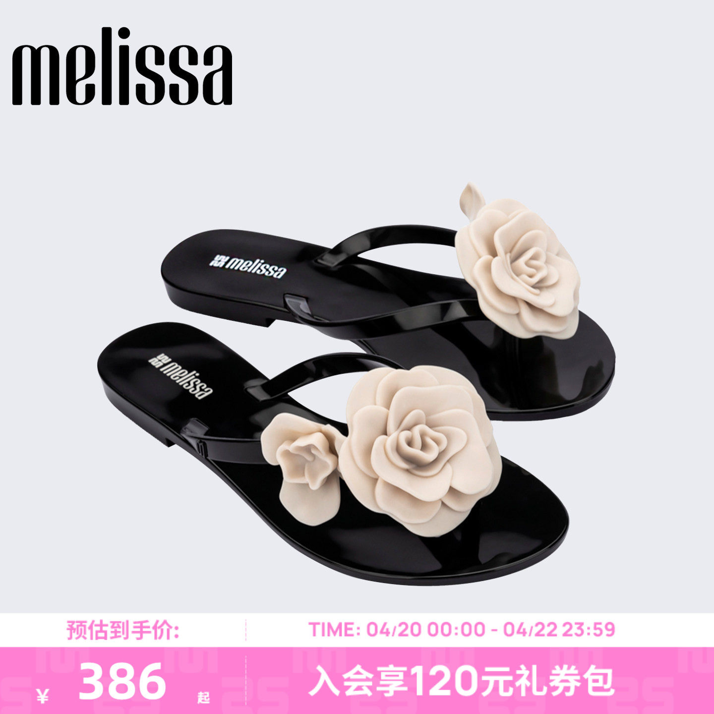 Melissa/梅丽莎女士26新款夏季山茶花优雅时尚夹脚人字拖鞋37818