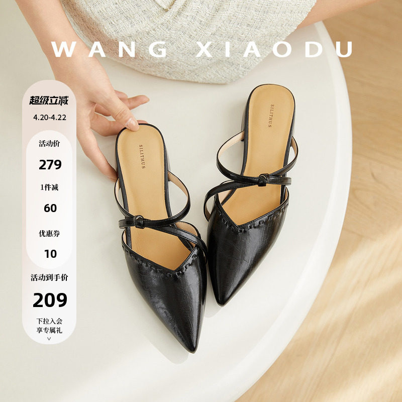 【王小毒】流云织夏●3.5cm尖包头拖鞋女粗跟夏交叉带外穿穆勒拖