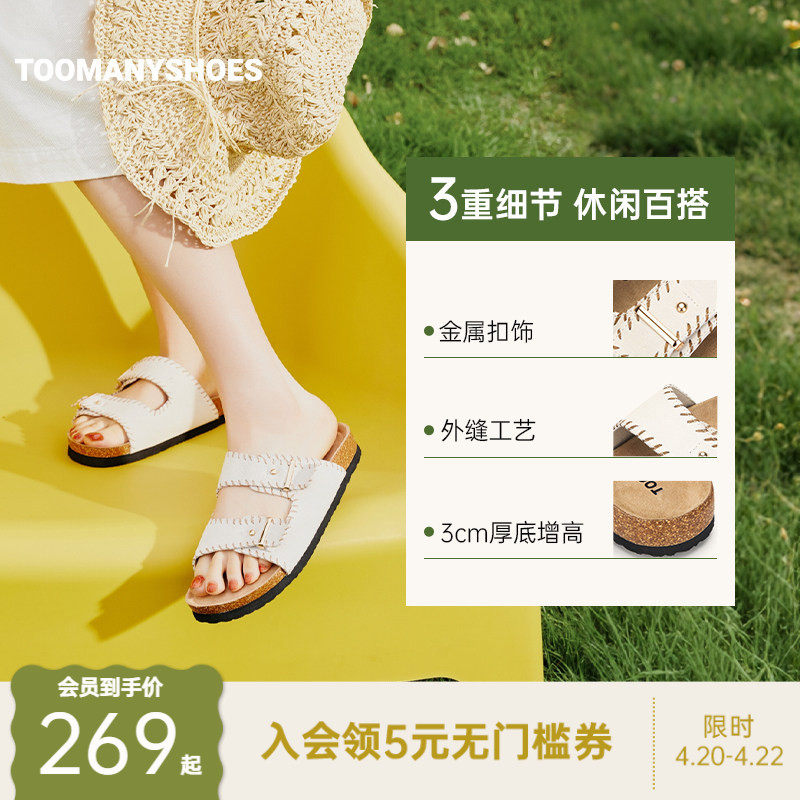 白鹿同款Toomanyshoes26新款延长假期勃肯拖鞋女夏外穿厚底沙滩鞋