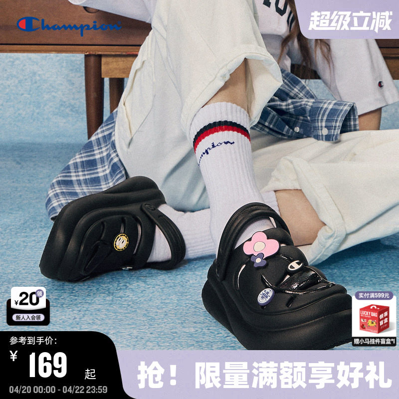 Champion冠军蘑菇洞洞鞋夏季趣味潮牌沙滩拖鞋厚底休闲凉鞋女