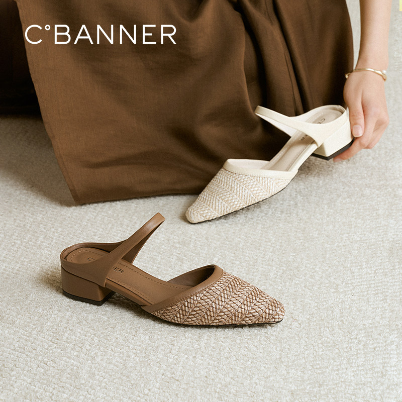 千百度中跟编织包头拖女2026夏季新款外穿通勤舒适不累脚凉拖鞋