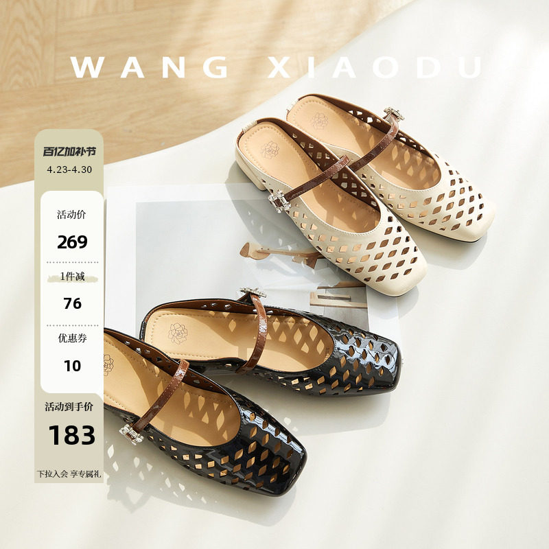 【王小毒】浮光仲夏●镂空粗跟包头拖鞋女夏季亮钻透气法式穆勒拖