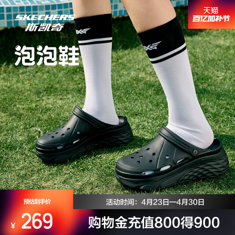 斯凯奇洞洞鞋女款舒适透气运动拖鞋外穿厚底踩屎感凉鞋沙滩鞋