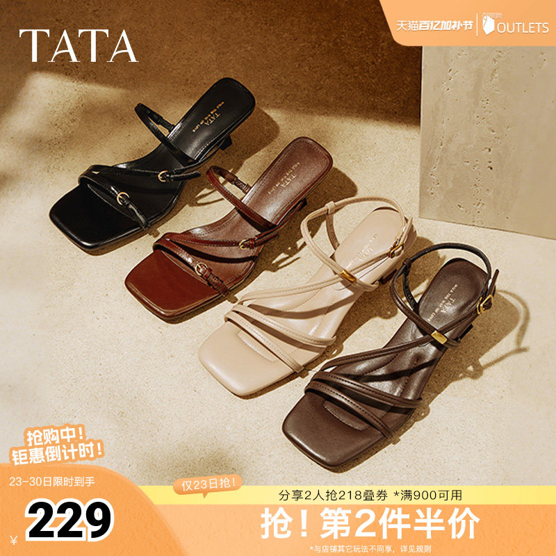 TATA他她小藤蔓气质高跟拖鞋女法式一字带休闲凉鞋夏7UJA9BT5奥莱