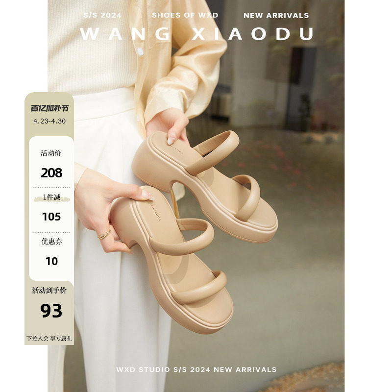 【王小毒】热带椰岛○马卡龙厚底拖鞋女夏外穿6cm增高一字带凉拖