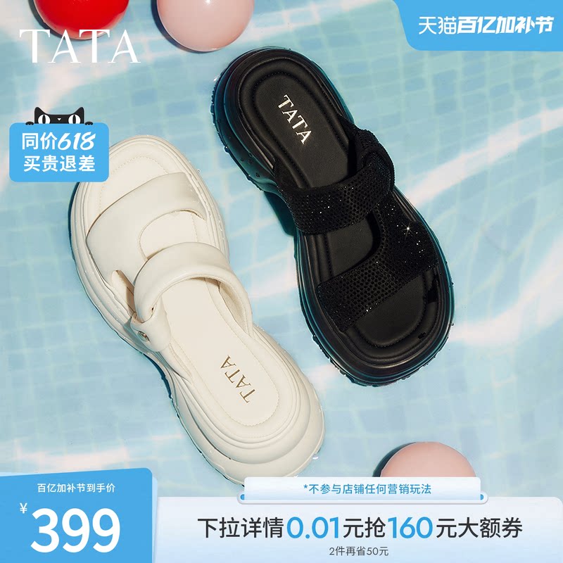 TATA他她休闲鞋厚底拖鞋女运动沙滩鞋外穿凉拖夏季新款7G305BT5