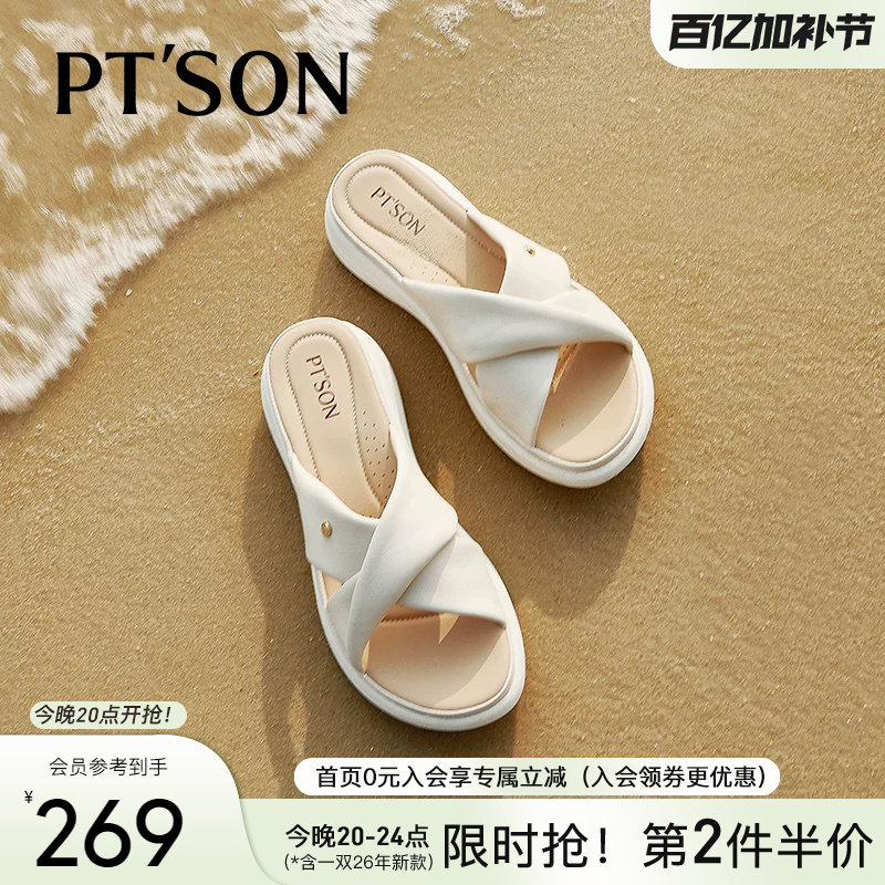 百田森羊皮软底拖鞋女海边沙滩女新款夏季厚底凉凉鞋女款夏季