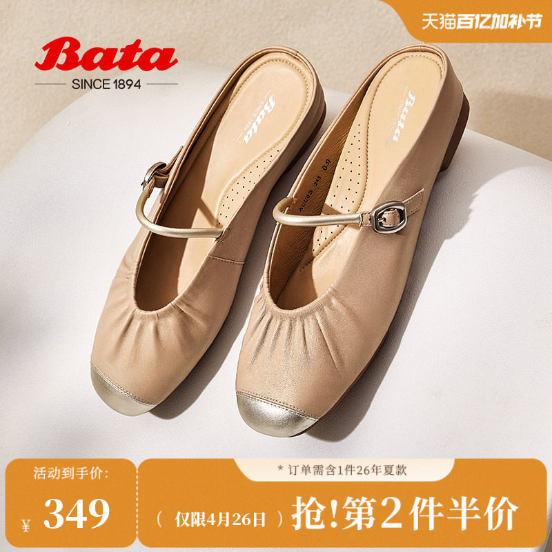 Bata穆勒拖鞋女商场新款羊皮牛皮软底一脚蹬包头拖AUU03AH5