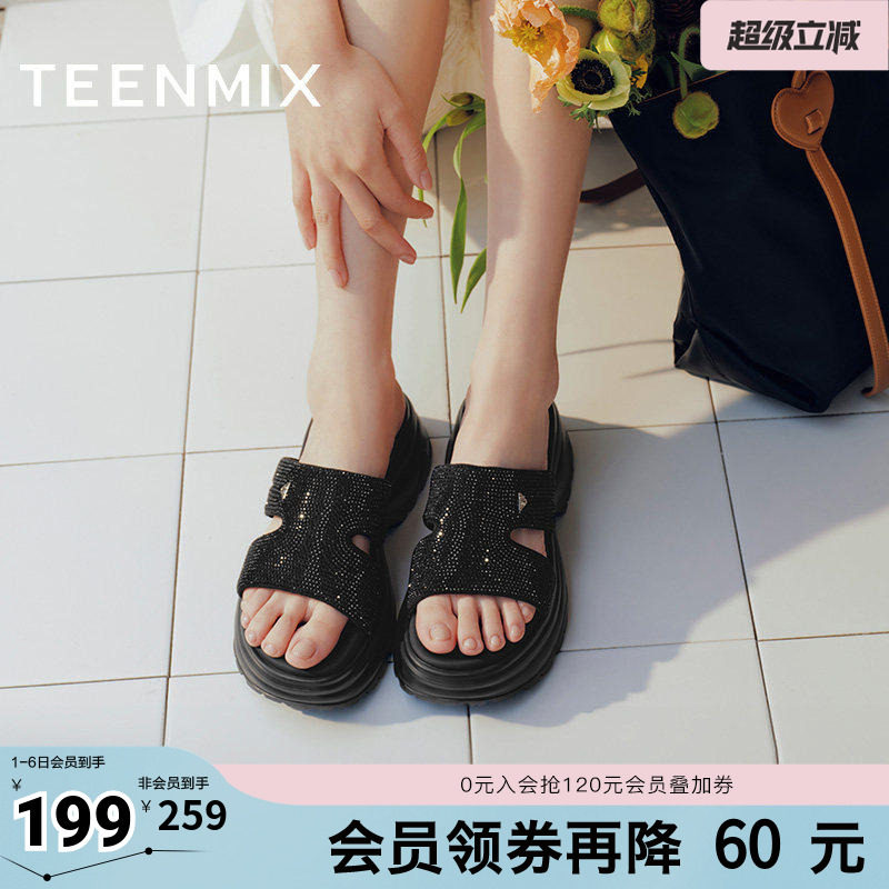 天美意新款商场同款厚底一字拖沙滩拖女运动拖鞋BI972BT5