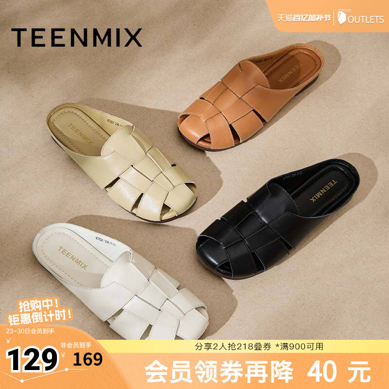天美意穆勒鞋包头半拖鞋女外穿凉拖罗马凉鞋子新款KT031BT4