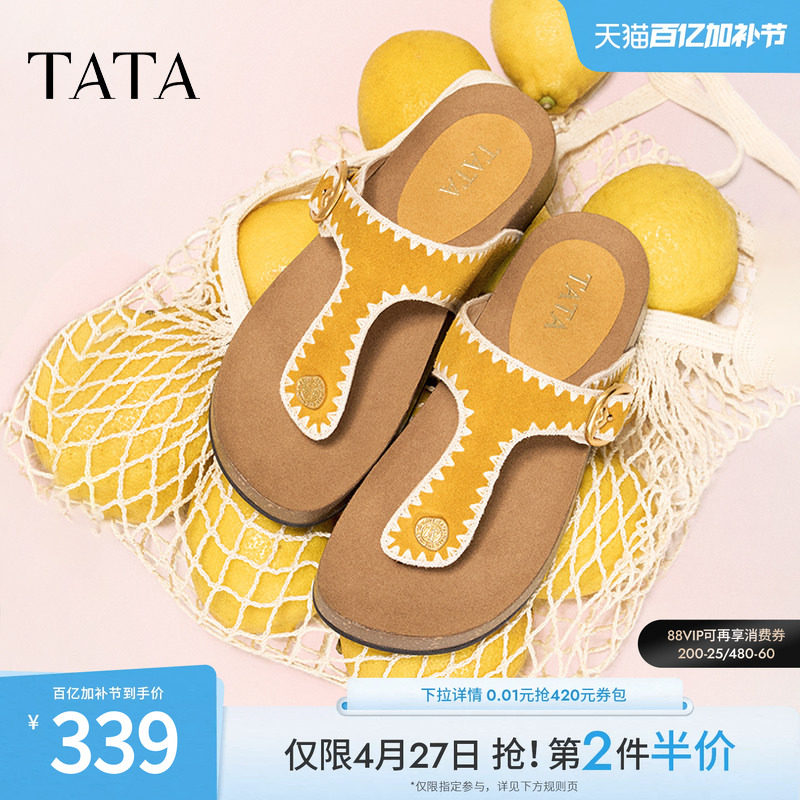 TATA他她复古休闲鞋夹脚拖鞋女鞋气质厚底凉鞋夏季新款7GN02BT5