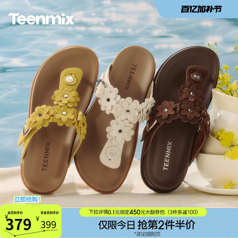 天美意复古人字拖夹趾厚底拖鞋女外穿海边凉拖2026夏新款6YX07BT6