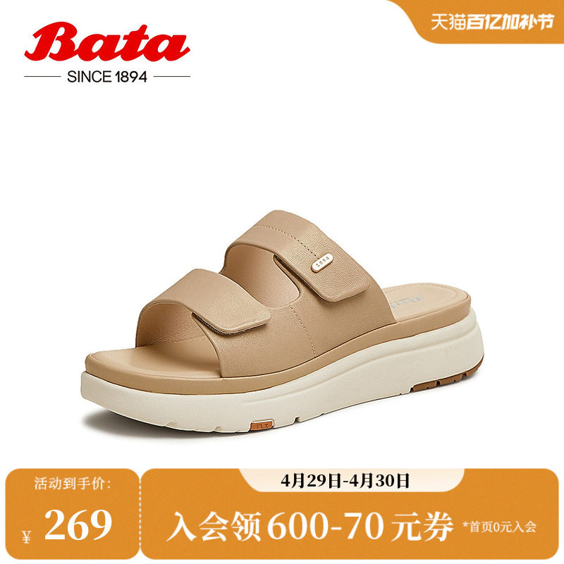 Bata外穿拖鞋女季商场新款羊皮厚底通勤软底凉拖鞋AYL33BT5