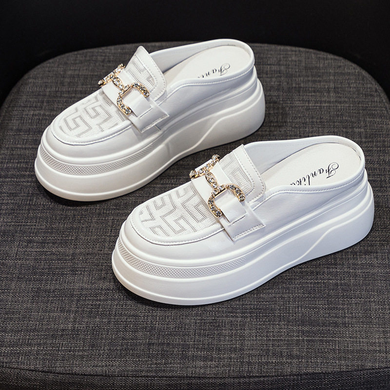 包头凉鞋女2026新款小香风亮面半拖鞋女外穿凉拖内增高厚底洞洞鞋