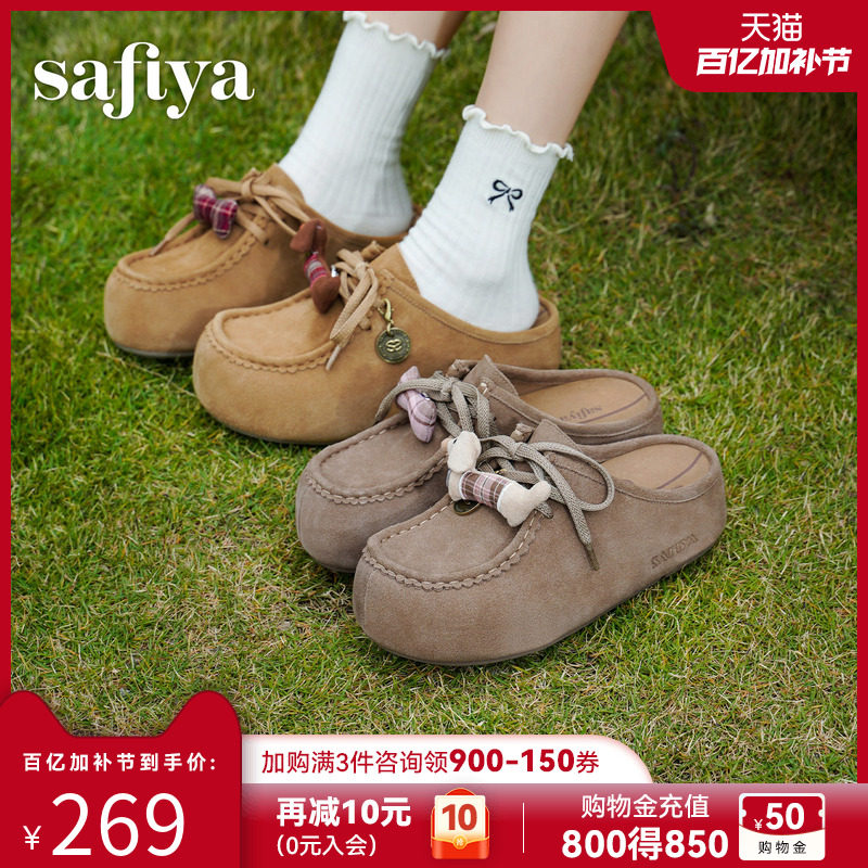 索菲娅复古风反绒皮勃肯半托鞋女2026春季新品懒人包头拖鞋一脚蹬