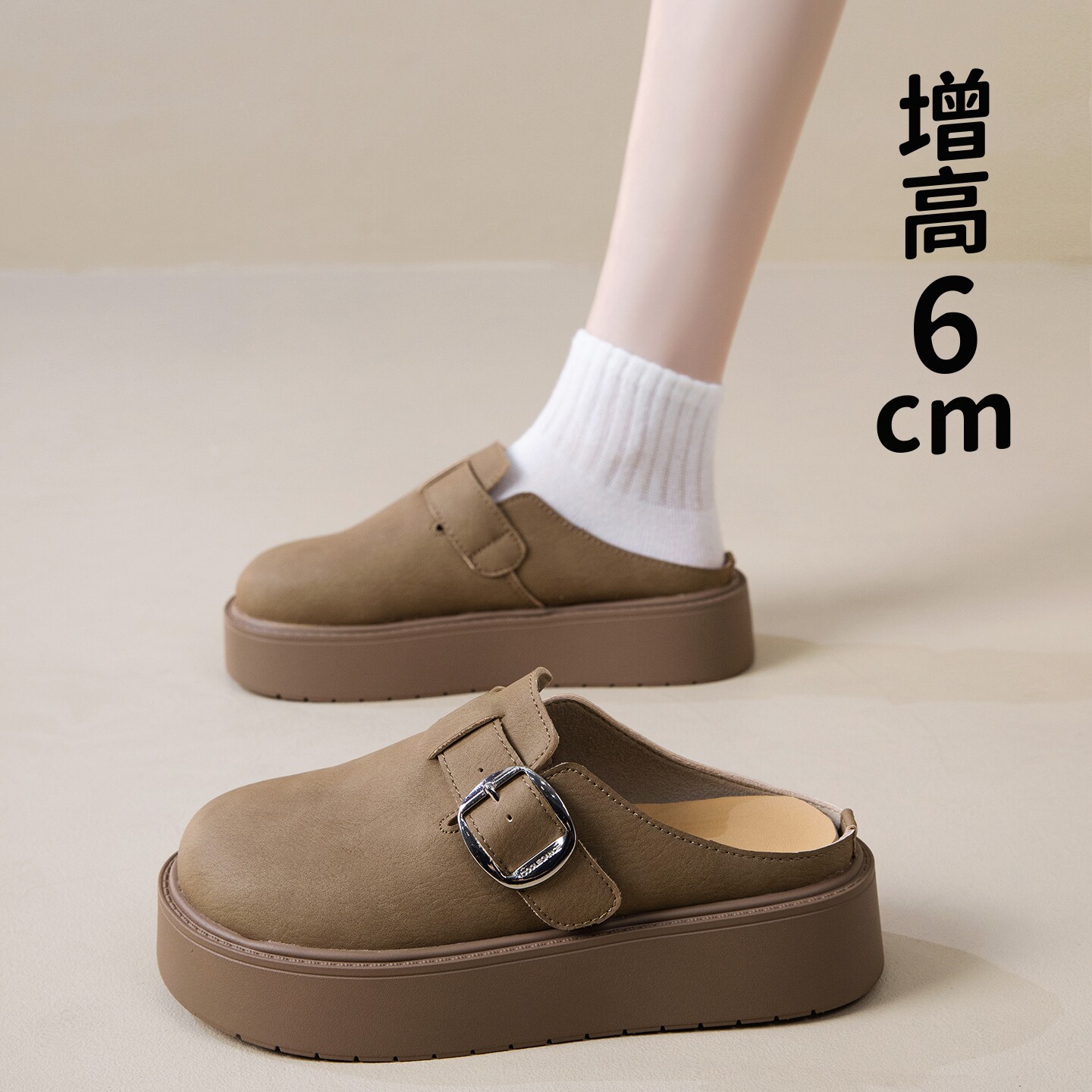 爆款内增高包头半拖鞋小个子女2026春夏新款增高显瘦无后跟勃肯鞋