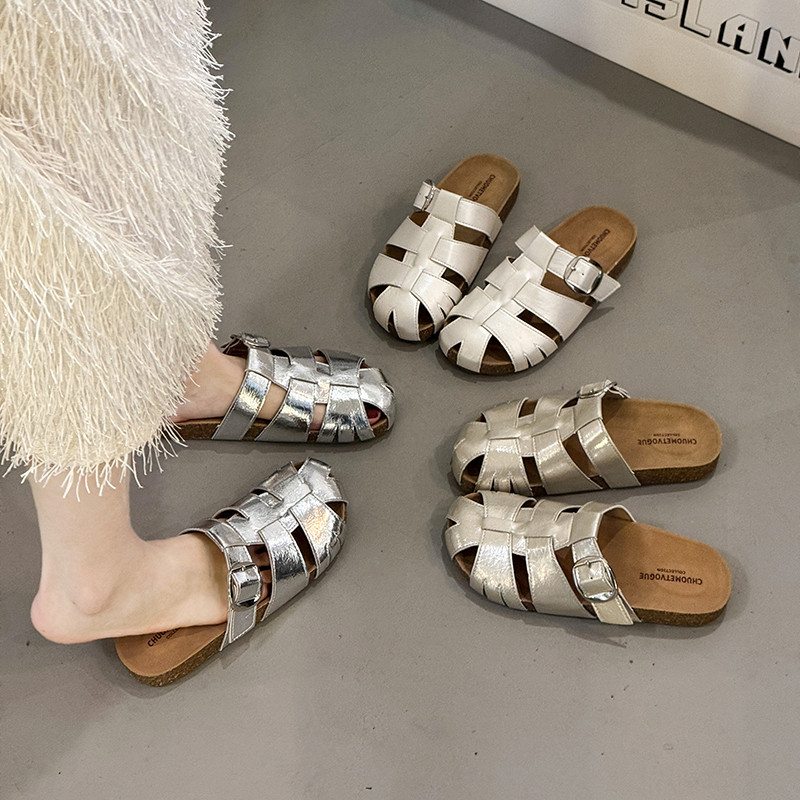 厚底勃肯鞋编织包头半拖鞋女外穿2026夏新款一脚蹬穆勒洞洞凉拖鞋