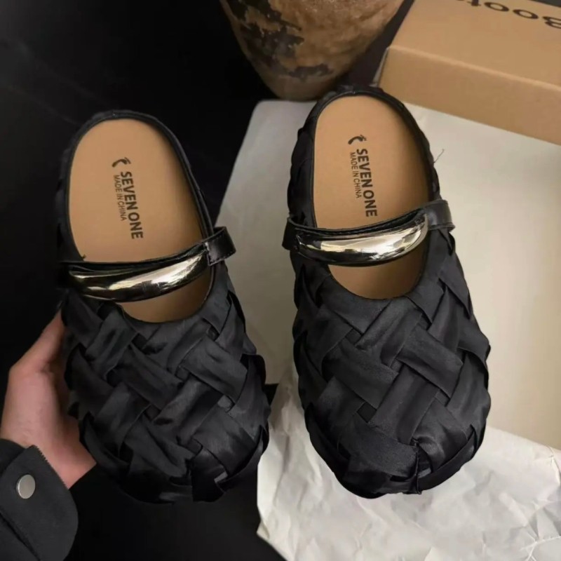 编织镂空包头半拖鞋女款2026夏季轻便海边渔夫鞋懒人一脚蹬凉拖鞋