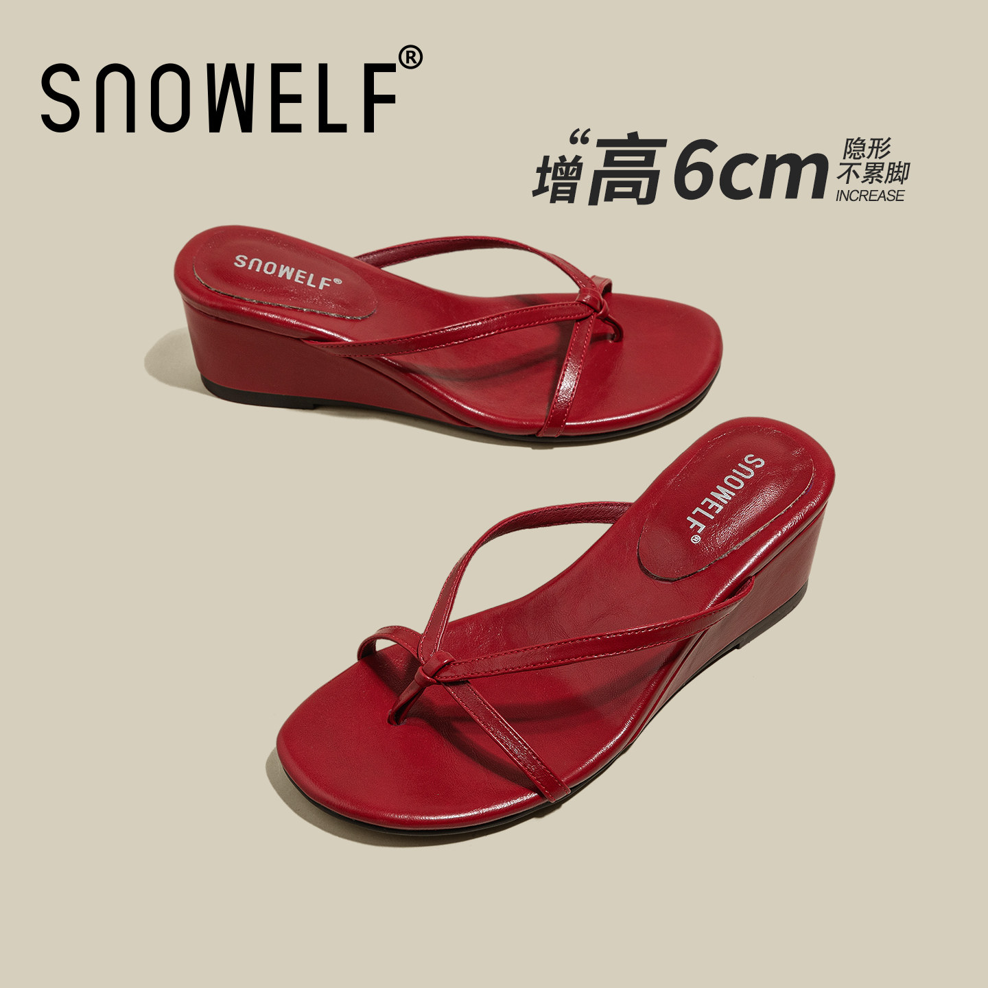 红色坡跟厚底人字拖女士2026新款夏季外穿夹趾拖鞋海边沙滩凉鞋子
