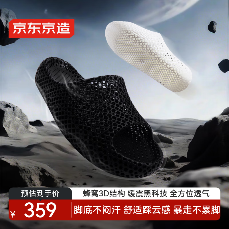 京东京造【3D打印拖鞋】防滑外穿透气软弹运动拖鞋凉拖 量子暗黑 43