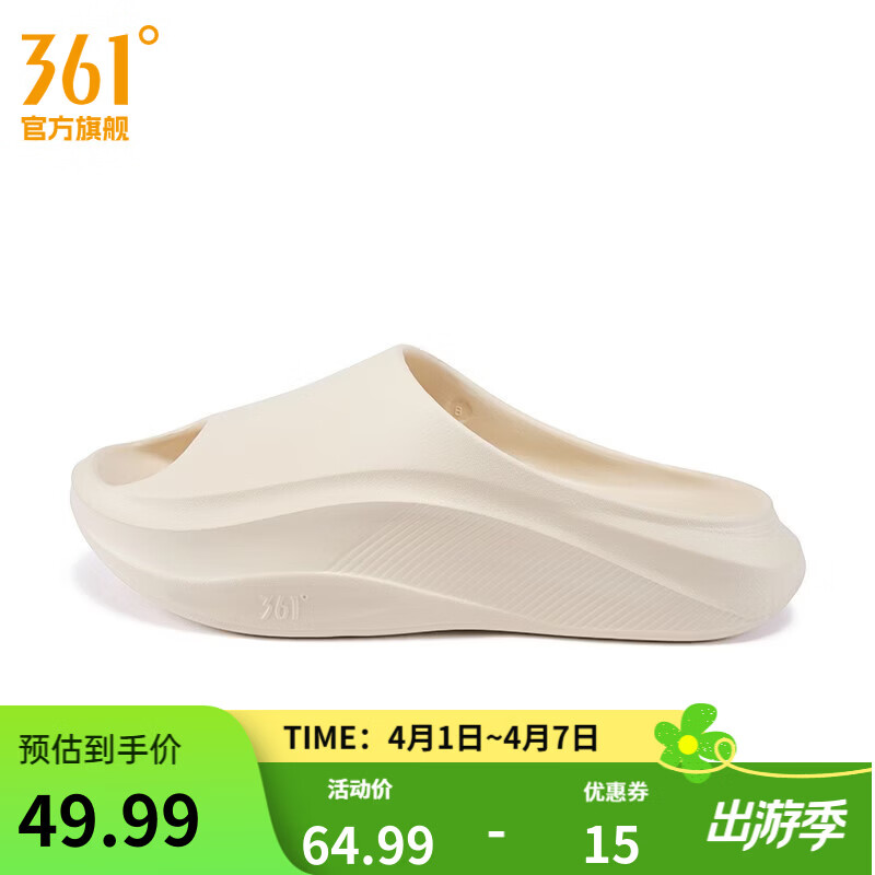 361°拖鞋2026年夏季新款情侣凉鞋室内沙滩鞋软底篮球户外防滑运动男鞋 米色 43 可拍大一码