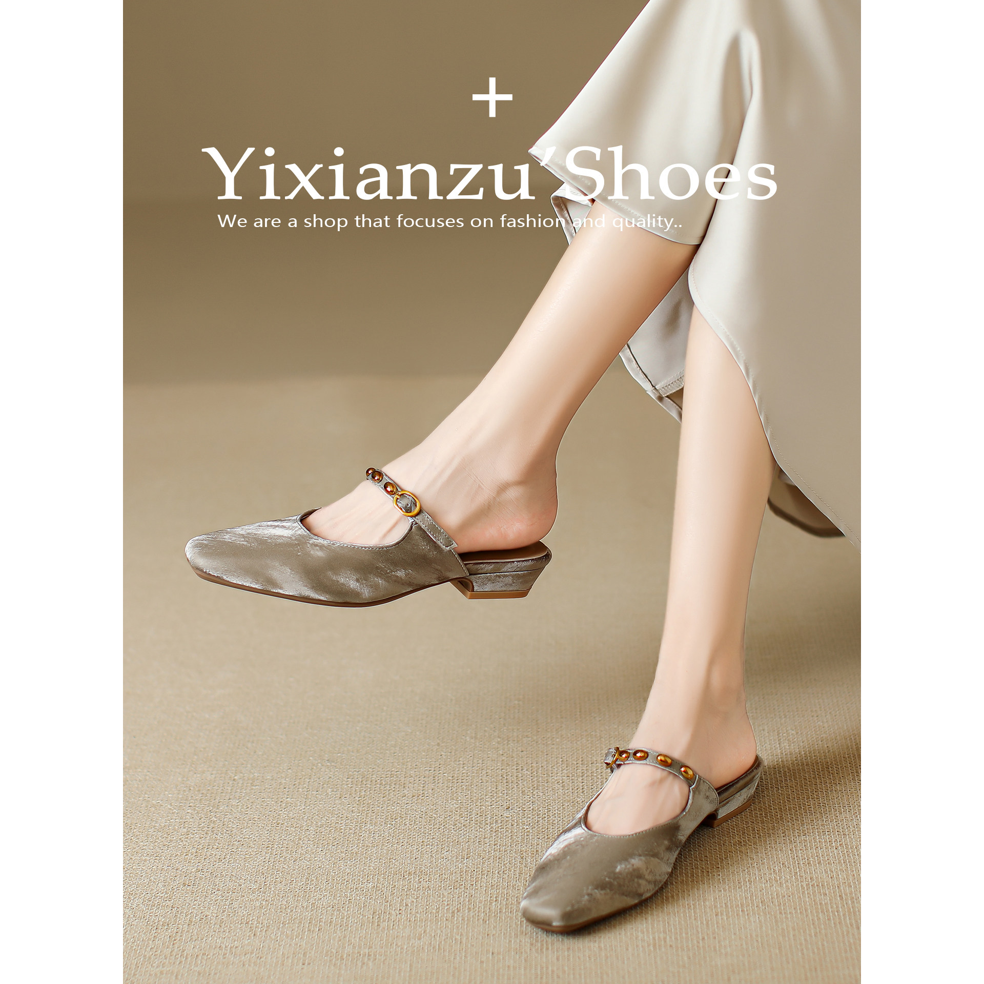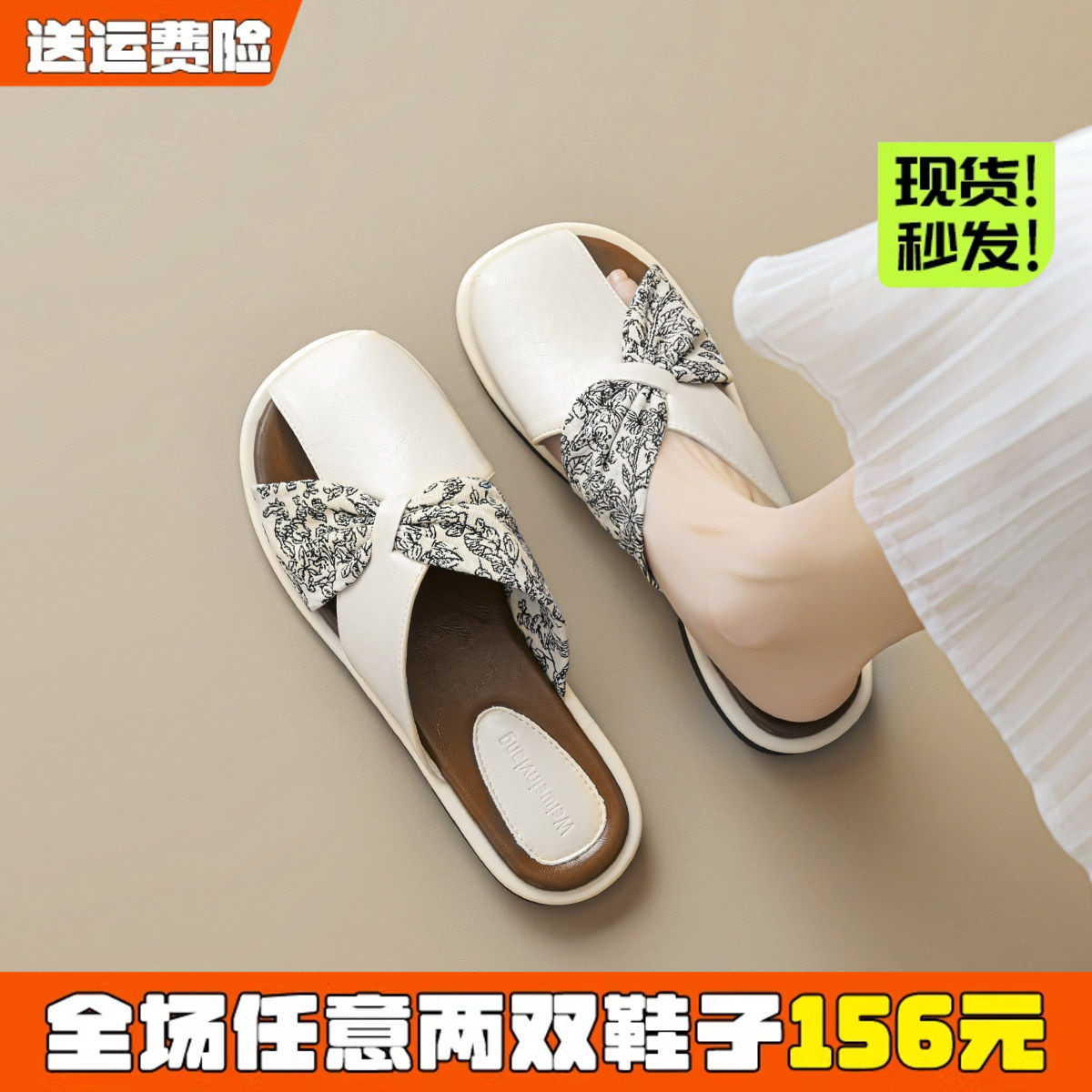 包头半拖鞋女外穿2026新款夏季中跟凉拖穆勒鞋时尚仙女风配裙凉鞋