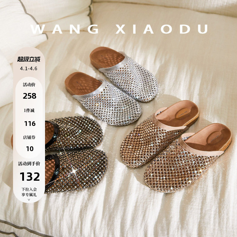 【王小毒】手织星芒○亮钻包头拖女2026年渔网透气柔软勃肯拖鞋