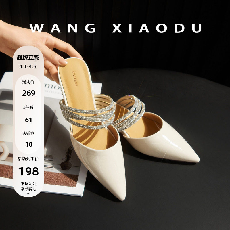 【王小毒】星河浅夏●2.5cm亮钻包头拖鞋女外穿尖头亮面粗跟凉拖