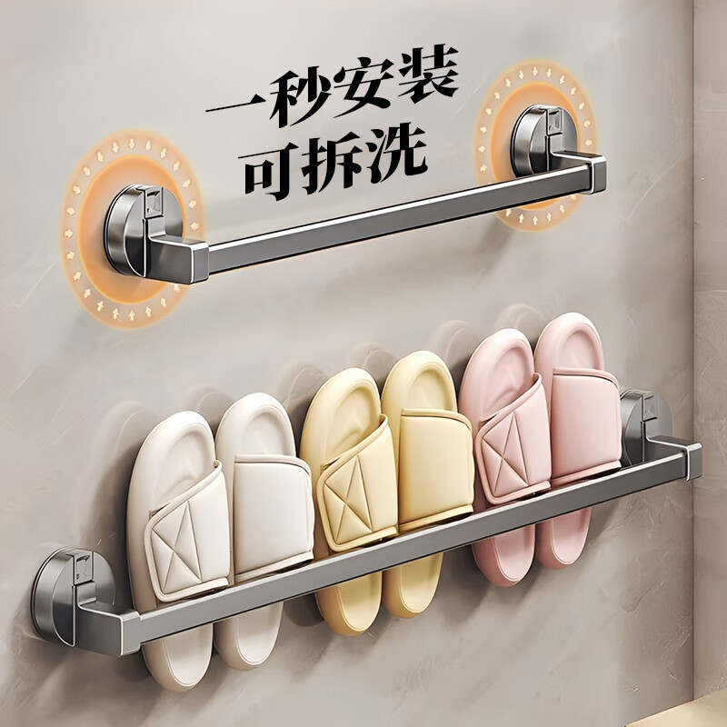 聚怡吸盘拖鞋架免打孔卫生间收纳神器厕所挂架墙上毛巾架门后置物架 【枪灰色70cm】超强太空铝 | 掉落包赔
