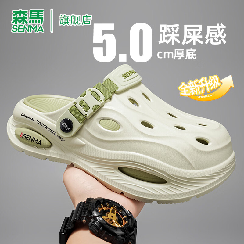 森马洞洞鞋男2026夏季新款男士运动凉鞋沙滩外穿防滑耐磨包头拖鞋