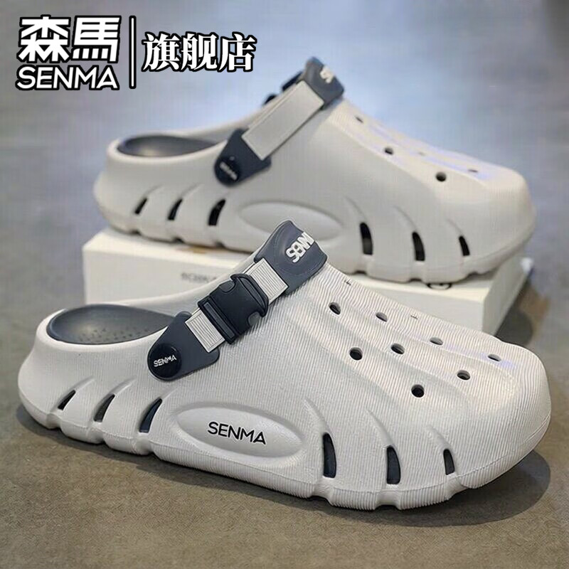 森馬包头拖鞋男款夏季外穿踩屎感洞洞鞋男士开车两用防滑防臭沙滩凉鞋 浅灰 【基础款】 41 (40-41 同码)
