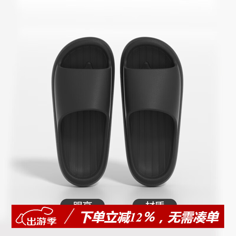 朴西香蕉船软底简约拖鞋女夏季亲子款时尚居家防滑浴室eva凉拖鞋 黑色 42-43
