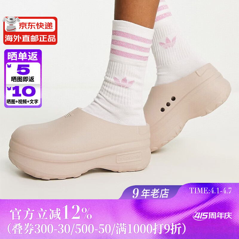 阿迪达斯(adidas)一脚蹬半拖ADIFOM女子厚底运动休闲凉鞋 增高拖鞋 沙褐色IE7052 36.5