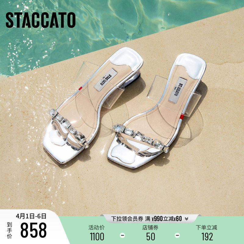 思加图新款无糖苏打仙女鞋凉拖鞋粗跟外穿女凉鞋EI409BT5