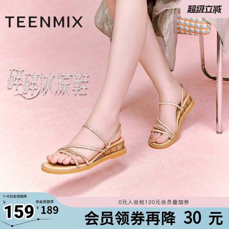 天美意新款坡跟条带外穿舒适简约百搭女凉拖鞋CTI20BT4