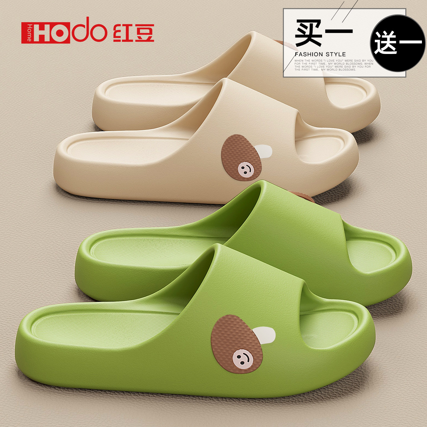 红豆买1送1可爱拖鞋女款2026新款室内家居防滑软底情侣拖鞋一对男