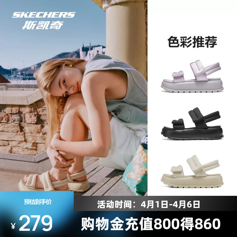 斯凯奇女子运动凉鞋时尚拖鞋增高柔软舒适简约轻盈厚底拖鞋外穿