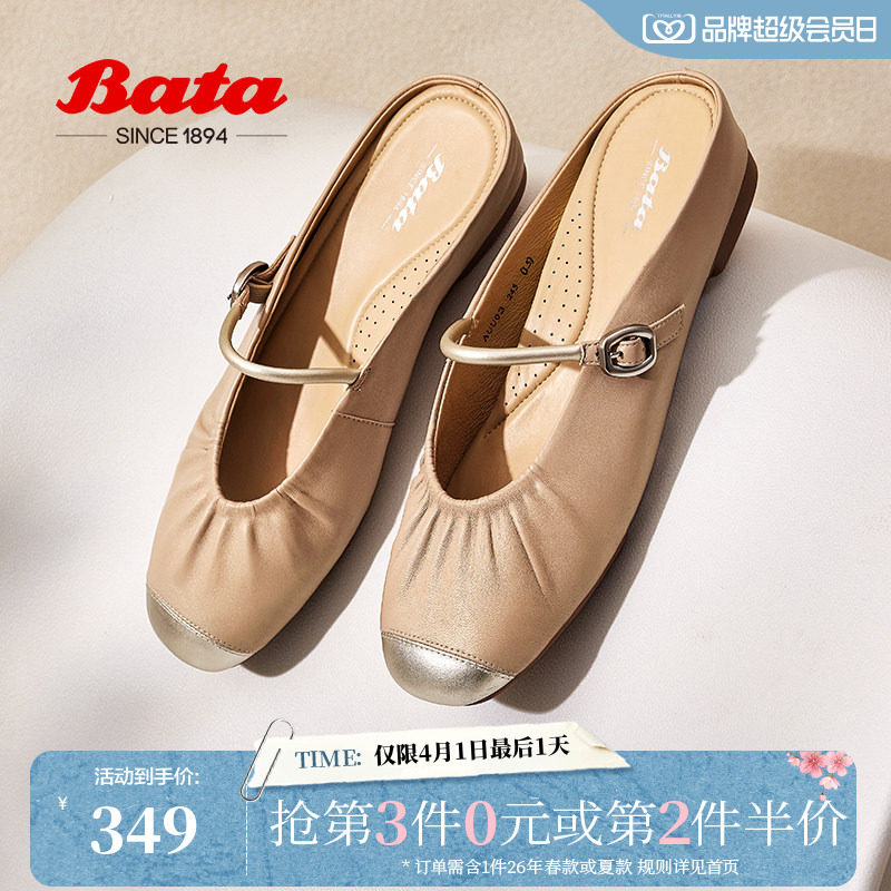 Bata穆勒拖鞋女商场新款羊皮牛皮软底一脚蹬包头拖AUU03AH5