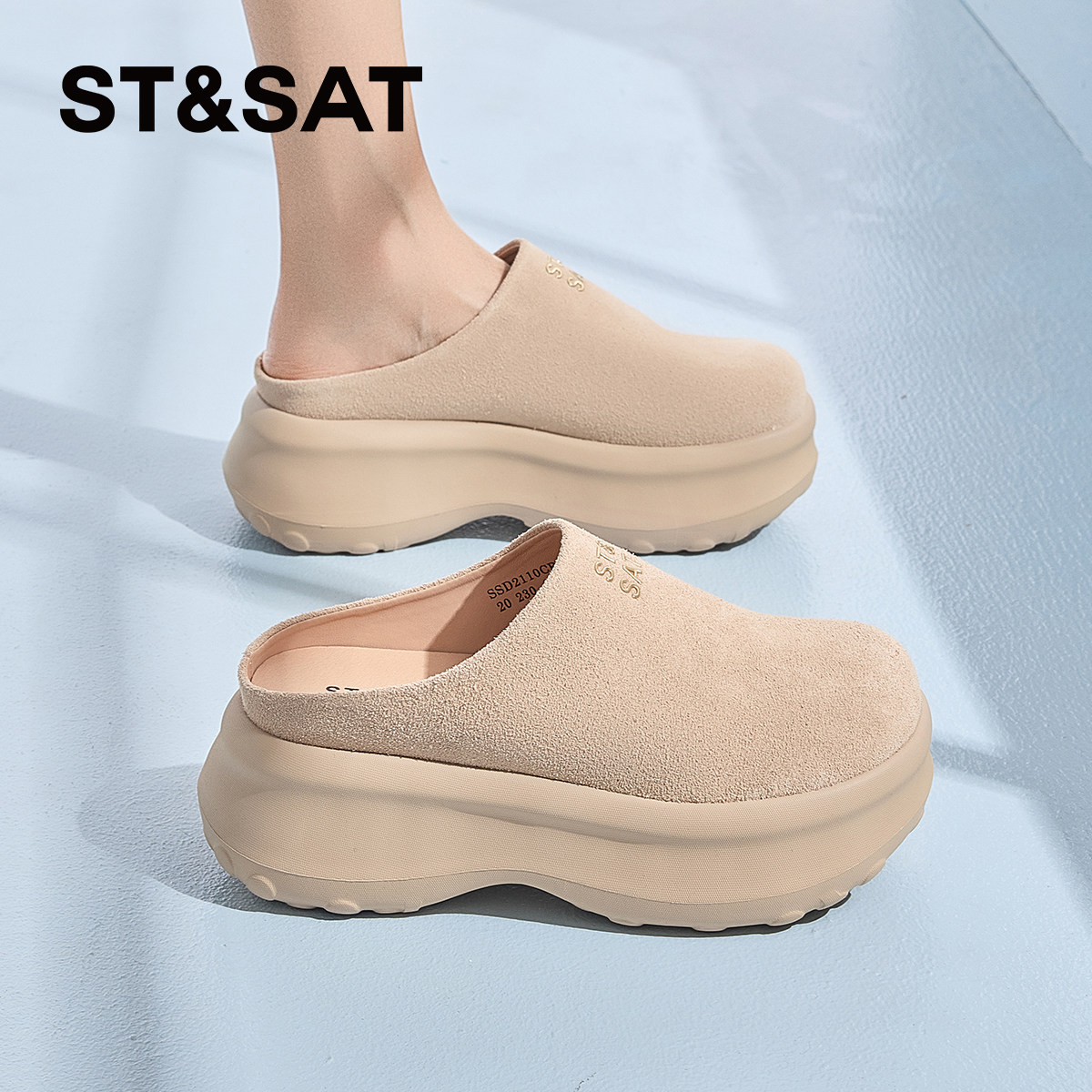 星期六厚底勃肯鞋女夏季新款一脚蹬增高舒适懒人拖鞋外穿包头拖鞋