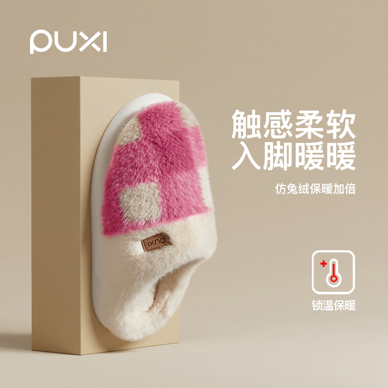 朴西冬季新款棉拖鞋女士软底毛绒保暖简约居家室内防滑情侣棉拖男