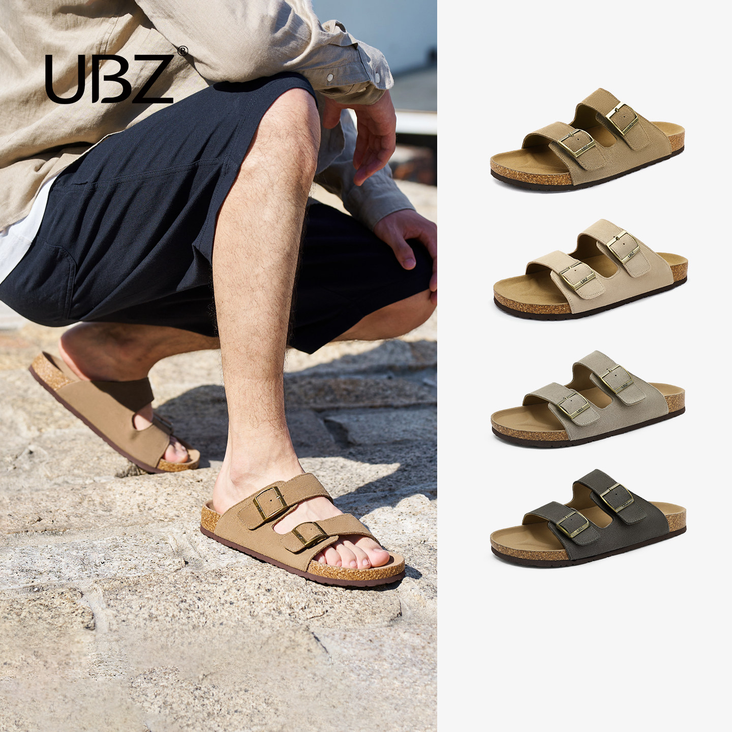 UBZ 复古勃肯拖鞋男2026夏季新款博肯软木厚底凉拖外穿防滑沙滩鞋