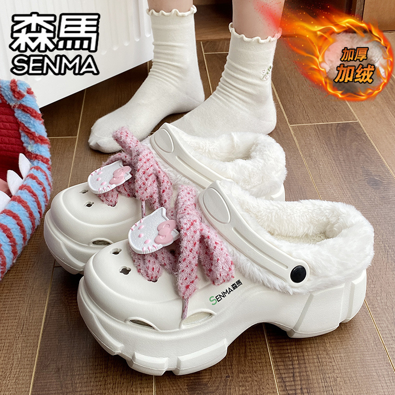 森马棉拖鞋女2025新款冬季加绒保暖棉鞋网红超火外穿厚底增高拖鞋