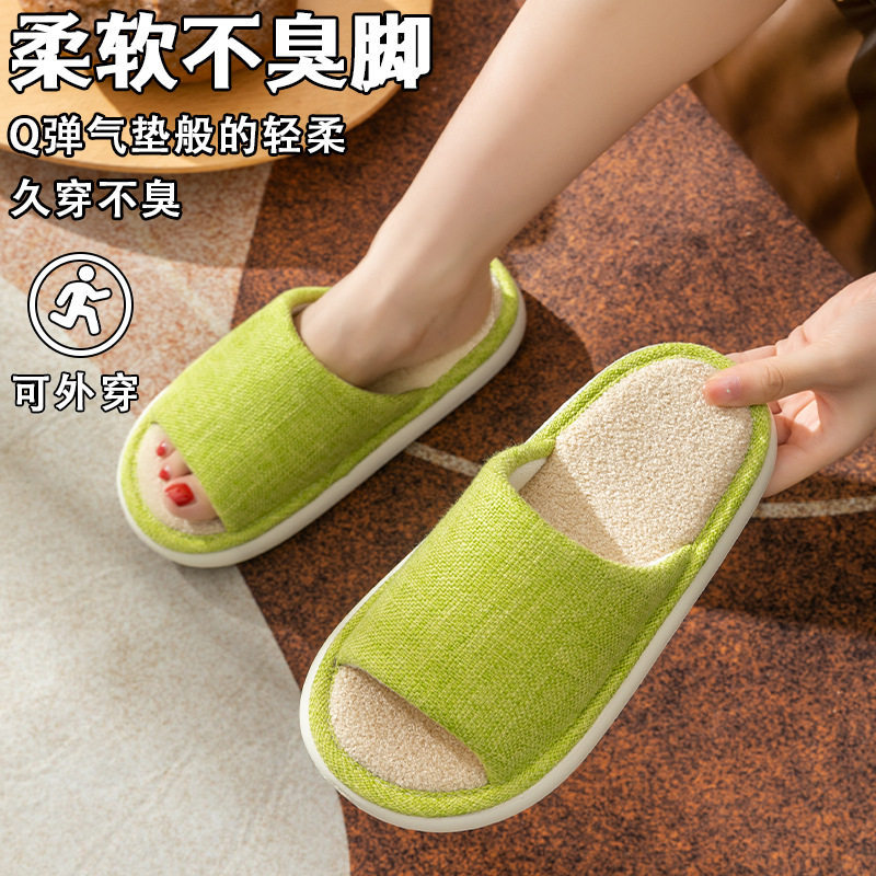 日式防臭亚麻拖鞋女男室内情侣四季家居家用木地板棉麻吸汗凉拖鞋