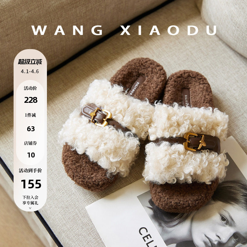 原创【王小毒】冬日摩卡●3.5cm增高软萌羊羔毛毛拖鞋女保暖一字