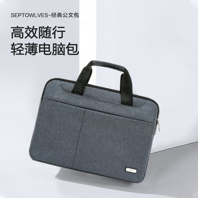 七匹狼商务公文包男士时尚休闲手提电脑包大容量牛津布简约笔记本保护套 灰色 15.6英寸