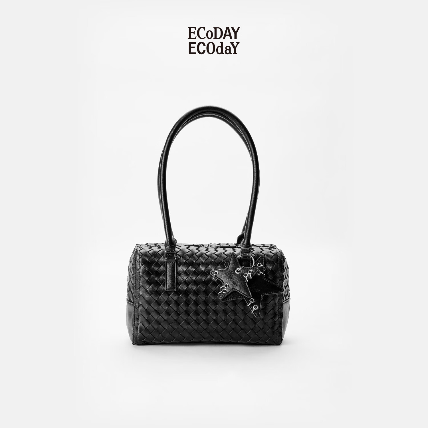 ECODAY编织包公文包单肩手提腋下包波士顿包送女友生日礼物 黑色